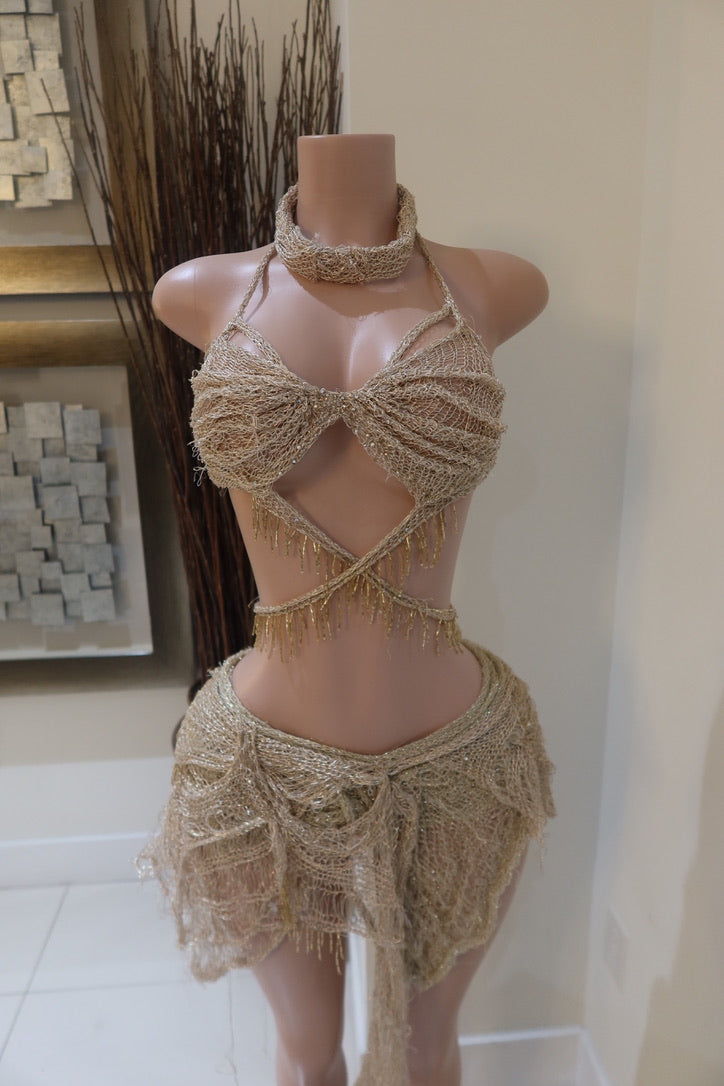 Custom Three Piece Performance Khaki Small Set (top, skirt, band)